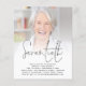 Ett bra värde PAPPER (inte kort) alternativ UTAN KUVERTER i mindre storlek 4,5” x 5,6” och till ett budgetpris. (Standard A6-kuvert är närmaste storlek att passa). Script Foto 70-årsdag festinbjudan. En minimalistisk design för din sjuttioårsfest, med en elegant script för rubriken. Byt enkelt ut exempelbilden mot din egen favorit och anpassa resten av texten efter behov