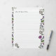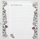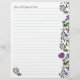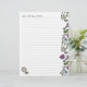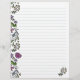 Blommigt illustrerat skrivpapper med linjer. Stort papper (21,59 x 27,94 cm) med handritade små blommor och blad längs kanterna. Personliggör med en textrad högst upp på ena sidan. Exempeltexten är "Here's what happened today..." i ett handskrivet teckensnitt. Den fantasifulla designen är utförd i grönt, lila och gult och finns på motsatta kanter på varje sida av papperet. Använd för att skriva korrespondens, lägg till i en dagbok eller junk journal, eller stans hål och lägg till i en scrapbook-ringpärm.