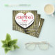 Ett pappershjärta, fäst på en träpanelbakgrund, för att skriva din egen text på.