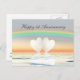 Vykort med min konst av två pappershjärtan som flyter på vattnet under en regnbåge. Anpassningsbar text säger "1 år".