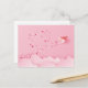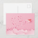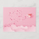 Pappersklipp pappersflygplan med hjärtan i jetströmmen på en rosa himmel med rosa moln.