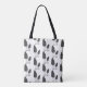 Hela texten är tryckt på morel-/Morchella-svampar som är tryckta i upprepande mönster på en målarväska.