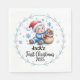 Lägg till charm och praktisk skicklighet till bord med Baby:s första julservetter. I designen visas en pojke bredvid en säck presenter, som markeras med blått fenad accent. Anpassa till namn i baby för att göra firande under gångens livstid ännu mer minnesvärt.