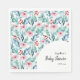 Pappersservett för baby shower, dekorerad med förtjusande akvarellväxtbilder med mjuka pastellgröna och blå blad, grenar och mjuka rosa rosor.