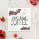 En uppsättning pappersservetter med en kaffetematisk bild.