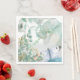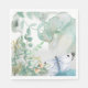 Vacker papper napkin i grönt, blått och persikopastelliserat. Bild av en fjäril och blomma. Underbar för avsvärtning och andra pappra hantverk.