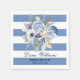 Dammblå nautiska randiga servetter för bröllopsfest med stjärnfiskar och snigelskal