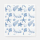 Denna vita pappersserviett visas i ett vackert blått och vitt tryck med snäckskal.