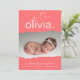 Baby födelsedag | Ett ljusdjupt levande korallrev i Färg - minimalistiskt och rent - ord Mötet skapat i en söt kalligrafi i finare, sedan Baby Namn i stor gemener med stora bokstäver - Din Baby Photo i en söndersliten papper effekt ram som du kan ändra färg om du vill - med detaljer på grund.