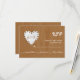 Pappert hjärta på trä med svarskort eller svarskort i monogram som innehåller ett pappert kärlek-hjärta med hål på brunt trä. I hjärtat finns ert initialer. Den här roliga, vita, monokemiska bröllop-malldesignen är helt anpassade och är perfekt för ett avslappnad fall-bröllop. Text i vitt med ett teckensnitt som ser ut som handskrift. Observera att allt bara skrivs ut på bilder.