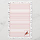 En söt klädd stationär papper, dekorerad med en röd kardinalfågel som målats i vattenfärg med en gräns av svart penna och bläck löv och stammar. Bra för naturalister och fågelskådare!