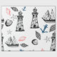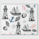 Pappert omslag, sommartema, Omslagning Pappert, nautiskt tema, inslagning av pappra sjöar, hav, strand, pappert omslag till havs, papper omslagning, omslagning, omslagning, fyr, musslor med mera illustration