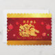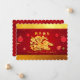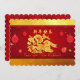 Kute papper klippning av kanin med skugga placerad på en dekorativ bakgrund med stiliserade kinesiska lyktor och blommor. Utformning på platta kort-inbjudan till vågrät med Gott nytt år på kinesiska och År för kanin + guldtexturerad papper (utskriven bild) som bakgrund (framsida), samma bakgrund i bakgrunden med texter som kinesiska nyårsbilder för Party att anpassa. Du kan enkelt ändra kaninens, det kinesiska önskemålens och kaninens ställning och storlek (textbild). Matchande hälsningskort, inbjudan, hantverksutrustning, party och mycket snart... Perfekt för kinesiska nyåret 2023.