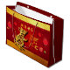 Kute papper klippning av råtta med skugga placerad på en dekorativ bakgrund med stiliserade kinesiska lyktor och blommor. Utformning på stor presentväska med Gott nytt år på kinesiska och råtta (calligraphy stil). Du kan enkelt byta position och storlek för råtta, kinesiska önskemål och råtta (textbild). Matchar hälsningskort, inbjudan och mer... Perfekt för Kinas nya år Råtta 2020.