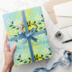 Grattis på födelsedagen flödade presentfigursättning. Den tealblå bakgrunden kan växlas till vilken färg som helst. Tvotstexten kan ändras till kostym när som helst, och färg kan också ändras.