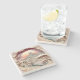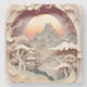 En vacker sten underlägg med en framtagen papper klippscen som skildrar sol, berg, träd, gammal arkitektur.