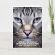 En rolig fars dag-kort med en katt som presenterar en bild av en katt som intensivt tittar på dig, Pappa, med texten ”Människa, jag är hedrad att ha dig som min kattpappa. Envisa inte mig!”. Inuti kortet står ”Grattis på fars dag” som kan anpassas.