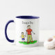 Far och son håller händer. Mannen har läst "pappa" och pojkens skjorta lyder "mig". Både föräldrar och barn har brunetthår. Rubriken lyder "Pappor Boy", men du kan ändra den för att lägga till egna namn! Även denna förälder- och barnfamilj bild kommer i färg som blond eller inte i färg som teckning. Gör en personlig Fars dag Gift mugg med egen text och bilder med hjälp av knappen "Anpassa den"!