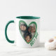Hjärtformade mugg-gåva till den du kärlek. Anpassa med eget foto och ett eget anpassningsbar-meddelande. Perfekt till ge som en gåva till din partner eller nära och kära.