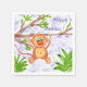 Några söta pappra blöjor för en barn med den vita illustrationen av en djungelapa och ord "Grattis på födelsedagen !" © ArianeC Illustrations