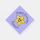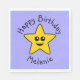 En leende gult stjärna på en god bakgrund önskemål i grattis på födelsedagen.