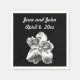 Fotot av en sydmagnolia som är gjord i krom för att få en mörk beröring på en klassisk blomma. Här visas den på en dramatisk och mer formell papper napkin som kommer i olika stilar och storlekar. Du kan enkelt ändra vilken text som helst, liksom bakgrunden till färg, till kostym på temat. Den här magnolien visas på andra produkter med fullständig anpassade.