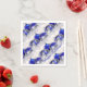 Glad helg - Elegant julservetter med vackra blå glitter julprydnader, vitt mousserande ljus, glansigt silver pärlor och tinsel.
