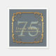 Golden ram med stiliserat blommönster. Det stora anpassadets nummer för ålder (75) i mitten. Färg nära guld för firandet av Namn och födelsedag. Alla bokstäver är dubbla som används för att skapar en skuggeffekt.