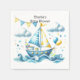 Den här fantastiska nautiska designen fångar magin i en babydusch. Få redo att segla in i firande med dessa charmerande babyduschservar, med en underbar blått och gult segelbåt som försiktigt flyter på en vågigt havsbotten med en viskig scen med ballonger, en flagga och fluffa moln. Redo att anpassa sig till din babydusch som du vill.