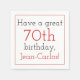 Den här rena och respektabla pappra napkin-designen med födelsedag innehåller ett meddelande som "Ha en underbar 70-årsdag, Jean-Carlos!", där namn och födelsedagsnumret kan anpassas. Anpassade pappra servetter som dessa kan användas vid födelsedagsfesten.