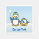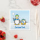 Lite penguin tecknad med snöboll och en blekt. Anpassningsbar.