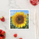 En solros nära, tagen mot en fält av solblommor