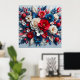 En brant och konstnärlig arrangemang av pappra blommor i olika nyanser, inklusive djupa , blå och mjuka vita. Kompositionen har detaljerade petaler och löv, skapar en lush och texturerat utseende, ställs in mot en subtil ljusblå bakgrund.