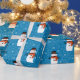 En söt vinter snögubbe med snöflingor på royalets blå bakgrund dekorerar denna pappra julomslutning. En enkel, roligt mönster för ert Helgdag. Designad av Blackberry Boulevard.