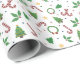 En papper omslutning med en juldesign som omfattar candy cane, Julgran, krans, holly, träd, stjärnor och polka dots. Perfekt för inslagning av gåvor till dina klienter eller till din familj och dina vänner i slutet av året i firande!