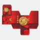 Utformning av kinesiska peonier + papper kaninskärpa (bildtryckt) + stor röd peony + Gott nytt år på kinesiska och engelska + anpassade 2023 + Family Namn och meddelande om anpassning till röd bakgrund med välbärgade moln. Utforma på kubens favoritruta. Perfekt för kinesiska nyåret 2023.