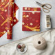 Produkten har ett dynamiskt, sömlöst mönster inspirerat av traditionella kinesiska motiv, som firar tur och välstånd. Utformningen visar golden grenar i adorad med blommar och dekorativt inslag, mot en rik röd bakgrund - ett färg som ofta förknippas med bra förmögenhet i kinesisk kultur. Grenar är dekorerat med vita och röda plommonblommar som symboliserar återhämtningsförmåga och skönhet. Spridningen under hela designen är röda tasslar, guld mynt och knop, traditionella kinesiska symboler för tur och välstånd. Blommarna och andra motiv är sammanflätade med ömtåliga konturer av blommor i guld, rött och vitt, vilket ökar djup och elegans. Det allmänna estetiska är festligt och högtidligt, skapar det idealiskt för kinesiskt nyår eller liknande kulturellt firande. Paletten rik röd och guld färg förstärker mönstrets goda och traditionella känsla.