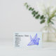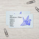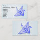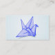 En blå papper origami-kran. Ett smart affärskort för tittar för hantverksbutiker eller hantverkare.