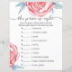 Pappra Lakan-spelet "pris är höger" för en babydusch har vackra vattenfärgspejonier, mjuka rosor och emerald löv.