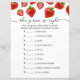 Pappra Lakan-vilt "pris är höger" för babydusch, dekorerat med vackra vattenfärgsjordgubbar.