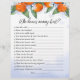 Pappra Lakan-matchen "Vem vet bäst?" för babyduschen dekoreras med en illustration av ett utsökt tangerin gren med blommor i en vattenfärgsskiss i stil.