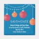 Färgfulla pappra lyktor på en sträng med ljus anger roligtens ton för din spara datumen. Perfekt för Vår eller Sommar bröllop. Om du vill ha en färg-ändring på lyktorna, så säg till, så gör jag ändringen åt dig. paula@labellarue.com
