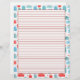 En julklädd kontorsbrevhuvud papper för att skriva helgdag brev till vänner och familj som dekoreras med helgdag i skuggor av turkos och röd vattenfärg accentuerad med punkter.