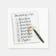 BOURBON ÄLSKARE SHOPPING LIST COCKTAIL HUMOR En humoristisk bild av en shoppinglista med 7 flaskor Bourbon whiskey och slutligen cigarrer på den accentuerade med en kaffefärg från kopp och en vilopenna. Cocktail Humor.