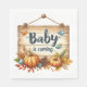 Fyll i party bord med höstens babyduschnapor, med frasen "Baby kommer" omgiven av pumpor, pinsekon, höstlöv och två små fåglar. Dessa rustiska blöjor är både praktiska och dekorativa, skapar dem perfekten att avsluta beröring för din mysiga fallbabydusch. Designat för att samordna med tallrikar och kopp, binder de ihop hela temat.