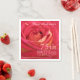 Fotografi av blommigten av en blek röd blommande ro med en lätt oskärpa för att lägga till mjukhet i bild. Utformning av den pappra napkin från party för att anpassa 75:e:s födelsedagsfirande + namn. Du kan enkelt ändra text (teckensnitt, färg, storlek och placering) genom att klicka på knappen Anpassa eller anpassa. Matchande papper skylt från party, födelsedagssparande datum (vykort och magnet), inbjudan, gäst bok (hård täckmantel och bärbar dator från spiral) med mera..