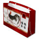 Kinas nyår i lycklig. Elegant Festive Red Gold Foil design Chinese Year of the Tupp Papper Gift Bags with a TradiAsian-tavla of the tupp. Kinesiska tecken på designen är ett Tupp-tecken i den kinesiska Zodiac och en av de vanligaste contemporaryn hälsning för kinesisk nyårslitterär översatt till "a Gott nytt år". Matchningskort och gåvor finns tillgängliga under det kinesiska nyåret/året för vår butikskategori Tupp.