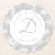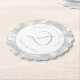 Pappra plattor av silver monogrammed faux-satin underlägg papper