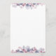 Bröllop fläkt-programmet är pappert och tomt med gräns av små blommor. Mörk rosa och blå petaler gräns överst och grund på slät, vitt papper med rundade hörn (eller ändra det).