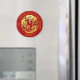 En tiger med gyllene kinesiska pappra snitt (modell nr 9) in i en öppnad cirkel + ett litet kinesiskt tigerideogram + Gott nytt år på kinesiska och engelska och stor 2022. Utformning på runt magnet med röd bakgrund. Du kan enkelt ändra bakgrunden färg och år (teckensnitt, färg, storlek och placering) genom att klicka på anpassningsknappen. Matchande hälsningskort och vykort. Perfekt för ett modernt och tidlöst kinesiskt nyår 2022.